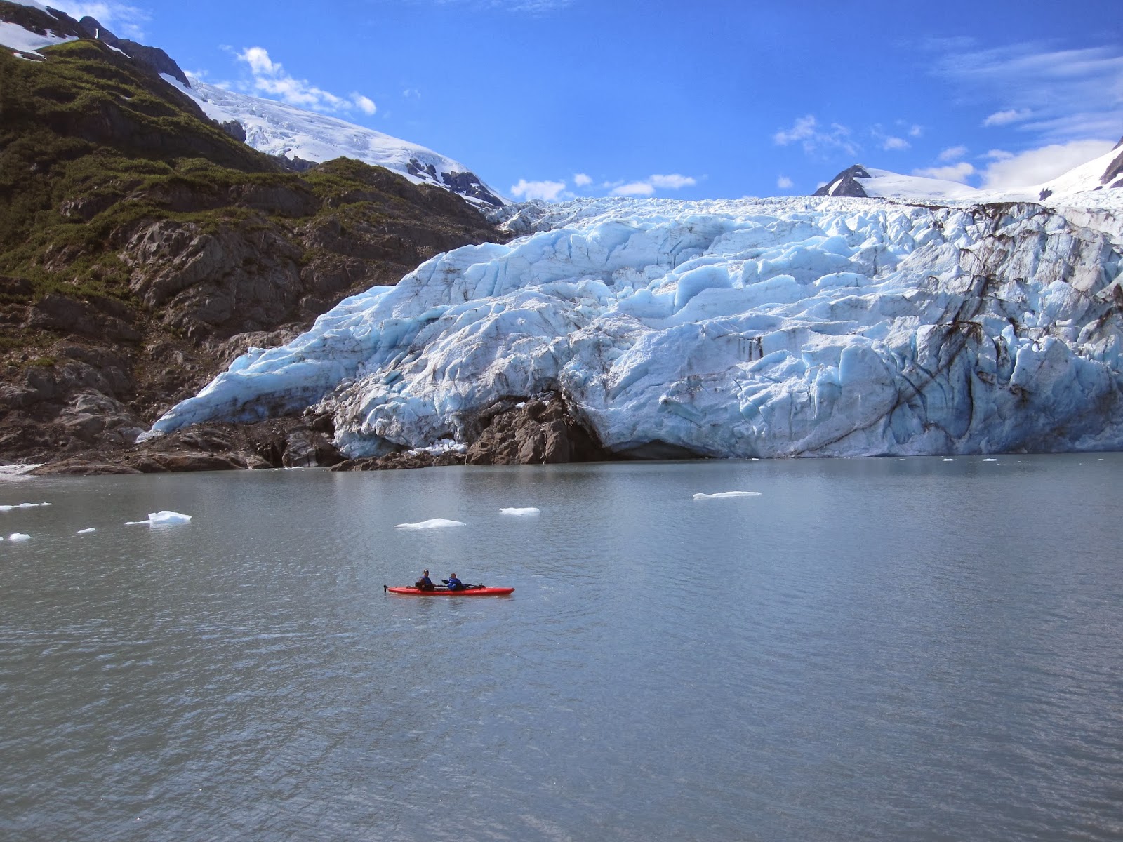 Chris surprised me with a cruise to the Portage Glacier. It was really amazing! The was ice that floated right by the boat and there were kayakers that were really close to the glacier. It has the most amazing blue color. It didn't calf -have a chunk fall off- while we were there. We did get to feel the ice and water, brrr!